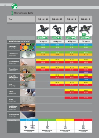 R%u00fchrwerke und QuirleTyp EHR 14.1 SK EHR 15.2 SB EHR 18.1 S EHR 20.1 R ANWENDUNGSBEREICHE 30 kg(max) 40 kg(max) 40 kg(max) 50 kg(max) Farbe/LackR%u00fchrquirl TypSG 120 SG 120 SG 120 SG 120 RG 120 RG 120 RG 120 RG 120 Leim/KleisterR%u00fchrquirl TypRG 120 RG 120 RG 120 RG 120 LG 120 LG 120 LG 120 LG 120 SpachtelmasseR%u00fchrquirl TypWG 120 WG 120 WG 120 WG 135 MG 120 MG 120 MG 120 MG 140 FliesenkleberR%u00fchrquirl TypWG 120 WG 120 WG 120 WG 135 MG 120 MG 120 MG 120 MG 140 SPG 150 Ausgleichsmasse/M%u00f6rtelR%u00fchrquirl TypWG 120 WG 120 WG 135 MG 120 MG 120 MG 140 SGR150 PutzR%u00fchrquirl TypWG 120 WG 120 WG 135 MG 120 MG 120 MG 140 EstrichR%u00fchrquirl TypWG 120 WG 135 MG 120 MG 140 BetonR%u00fchrquirl TypMG 120 MG 140 Beschichtung2K-MaterialR%u00fchrquirl TypDichtungsmasseR%u00fchrquirl TypR%u00fchrquirl Typ S, SGR 150 R W MScheiben-R%u00fchrer, verzinktRonden-R%u00fchrer,verzinktWendel-R%u00fchrer, verzinktM%u00f6rtel-R%u00fchrer, verzinkt661 max.120 1 max.120 1 max.120 1 max.150S, SGR 150Scheiben-R%u00fchrer,