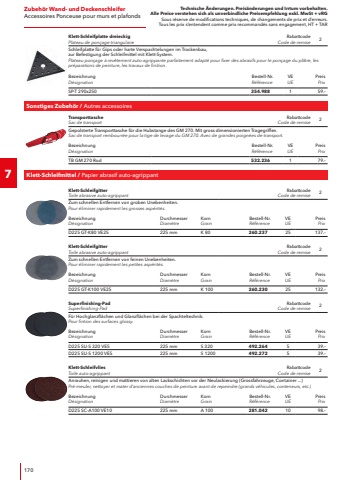 Technische %u00c4nderungen. Preis%u00e4nderungen und Irrtum vorbehalten.Alle Preise verstehen sich als unverbindliche Preisempfehlung exkl. MwSt + vRGSous r%u00e9serve de modifications techniques, de changements de prix et d%u2019erreurs. Tous les prix s%u2018entendent comme prix recommand%u00e9s sans engagement, HT + TAR61Zubeh%u00f6r Schweizer SpezialistenAccessoires Sp%u00e9cialistes suissesGewindereduktionR%u00e9duction du filetageRabattcodeCode de remise2BezeichnungD%u00e9signationBestell-Nr.R%u00e9f%u00e9renceVEUEPreis PrixGewindereduktion / R%u00e9duction de filetage M20 / M1451.191118.%u2013SchraubensetKit de visRabattcodeCode de remise2BezeichnungD%u00e9signationBestell-Nr.R%u00e9f%u00e9renceVEUEPreis PrixSchraubenset / Kit de vis51.21511.60Zubeh%u00f6r / Accessoires SM 21-6Ersatzmesser SM 21-6Lame de rechange SM 21-6RabattcodeCode de remise2BezeichnungD%u00e9signationL%u00e4ngeLongueurBestell-Nr.R%u00e9f%u00e9renceVEUEPreis PrixErsatzmesser / Lame de rechange 210 x 60 x 1.5 mm210 mm013.346138.%u2013Fahrgestell zu TeppichstripperChario pour d%u00e9colleuse de tapisRabattcodeCode de remise2BezeichnungD%u00e9signationBestell-Nr.R%u00e9f%u00e9renceVEUEPreis PrixFahrgestell / Chariot51.6151232.%u2013Zubeh%u00f6r / Accessoires SM 2106Ersatzmesser SM 2106Lame de rechange SM 2106RabattcodeCode de remise2BezeichnungD%u00e9signationL%u00e4ngeLongueurBestell-Nr.R%u00e9f%u00e9renceVEUEPreis PrixErsatzmesser / Lame de rechange 210 x 60 x 1.4 mm210 mm51.616129.%u2013Zubeh%u00f6r / Accessoires R 2602R%u00fchrpropeller INOX %u00d8 150 mmH%u00e9lice m%u00e9langeuse INOXRabattcodeCode de remise10INOX R%u00fchrpropeller f%u00fcr h%u00f6chste Anspr%u00fcche zum Vermischen von z%u00e4hem und dickfl%u00fcssigem R%u00fchrgut. Zur Verwendung mit dem R%u00fchrwerk R 2602.H%u00e9lice d%u2018agitation INOX pour les exigences les plus %u00e9lev%u00e9es pour le m%u00e9lange de produits visqueux et %u00e9pais. A utiliser avec l%u2018agitateur R 2602.BezeichnungD%u00e9signationDurchmesserDiam%u00e8treBestell-Nr.R%u00e9f%u00e9renceVEUEPreis PrixR%u00fchrpropeller / H%u00e9lice m%u00e9langeuse INOX150 mm51.213143.%u2013R%u00fchrstab inkl. SchraubensetB%u00e2ton m%u00e9langeur avec kit de visRabattcodeCode de remise2BezeichnungD%u00e9signationL%u00e4ngeLongueurBestell-Nr.R%u00e9f%u00e9renceVEUEPreis PrixR%u00fchrstab / B%u00e2ton m%u00e9langeur600 mm51.217132.%u2013