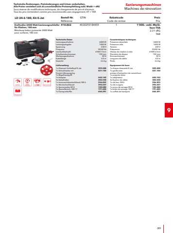 Technische %u00c4nderungen. Preis%u00e4nderungen und Irrtum vorbehalten.Alle Preise verstehen sich als unverbindliche Preisempfehlung exkl. MwSt + vRGSous r%u00e9serve de modifications techniques, de changements de prix et d%u2019erreurs. Tous les prix s%u2018entendent comme prix recommand%u00e9s sans engagement, HT + TAR374Zubeh%u00f6r Metalloberfl%u00e4chen-BearbeitungAccessoires Traitement de surface m%u00e9talliqueSchleif-Vlies gefaltetPapier %u00e9meri pli%u00e9RabattcodeCode de remise2Elastische Vlieswalze mit mehrfach gefaltetem Schleif-Vlies f%u00fcr einen fast ansatzfreien Schliff auf Edelstahl, Kupfer, Alu, Messing usw.Roue de polissage %u00e9lastique avec papier %u00e9meri %u00e0 pliage multiple pour un poli presque sans piq%u00fbre sur acier inox, cuivre, aluminium, laiton, etc.BezeichnungD%u00e9signationDurchmesserDiam%u00e8treBreiteLargeurKornGrainBestell-Nr.R%u00e9f%u00e9renceVEUEPreis PrixSW-VG A100 100x100100 mm100 mmA 100347.272154.%u2013SW-VG A180 100x100100 mm100 mmA 180347.280154.%u2013SW-VG A280 100x100100 mm100 mmA 280347.299154.%u2013Nylonb%u00fcrsteBrosse nylonRabattcodeCode de remise2Schleifkorndurchsetzte Kunststoffb%u00fcrste, dadurch kein l%u00f6sen des Schleifkorns vom Tr%u00e4germaterial. Zum B%u00fcrsten von Holzoberfl%u00e4chen, Entfernen von Farbr%u00fcckst%u00e4nden und Ausb%u00fcrsten von Jahresringen in Weichh%u00f6lzern. Mit 4-Nut Walzenkern, passend f%u00fcr alle Ger%u00e4te mit 19 mm Keilnutspindel (kompatibel f%u00fcr LP 1503 VR).Brosse en plastique garnie de grains abrasifs, les grains abrasifs ne se d%u00e9tachent donc pas du support. Pour brosser les surfaces en bois, %u00e9liminer les r%u00e9sidus de peinture et enlever les cernes des bois tendres %u00e0 la brosse. Avec noyau de rouleau %u00e0 4 rainures, convient pour tous les appareils avec broche cannel%u00e9e de 19 mm (compatible pour LP 1503 VR).BezeichnungD%u00e9signationDurchmesserDiam%u00e8treKornGrainBestell-Nr.R%u00e9f%u00e9renceVEUEPreis PrixBW-NY D110/85 P46110 mmP 46465.1351115.%u2013BW-NY D110/85 P120110 mmP 120465.1431115.%u2013Superfinishing-H%u00fclseManchon abrasif pour polirRabattcodeCode de remise2Zum Hochglanzpolieren ohne Poliermittel in zwei Stufen.Pour polir sans produit de polissage en deux %u00e9tapes.BezeichnungD%u00e9signationDurchmesserDiam%u00e8treBreiteLargeurKornGrainBestell-Nr.R%u00e9f%u00e9renceVEUEPreis Prix90x100 SU-S60090 mm100 mmS 600318.175124.%u201390x100 SU-S150090 mm100 mmS 1500318.183124.%u2013100x100 SU-S600100 mm100 mmS 600436.429126.%u2013100x100 SU-S1500100 mm100 mmS 1500436.437126.%u2013Schleifh%u00fclse ZIRCOFLEXManchon abrasif ZIRCOFLEXRabattcodeCode de remise9Schleifh%u00fclse mit hochwertigem, selbstsch%u00e4rfendem Zirkonkorund f%u00fcr verl%u00e4ngerte Standzeit. Hohe Abtragsleistung beim Grob- und Zwischenschliff von Stahl- und Edelstahloberfl%u00e4chen.Manchon %u00e0 poncer avec corindon de zirconium de haute qualit%u00e9 %u00e0 auto-aff%u00fbtage pour une plus longue dur%u00e9e de vie. Capacit%u00e9 abrasive %u00e9lev%u00e9e lors du pon%u00e7age grossier et interm%u00e9diaire des surfaces en acier et acier inoxydable.BezeichnungD%u00e9signationDurchmesserDiam%u00e8treBreiteLargeurKornGrainBestell-Nr.R%u00e9f%u00e9renceVEUEPreis Prix90x100 ZI-P60 VE590 mm100 mmP 60256.285536.%u201390x100 ZI-P100 VE590 mm100 mmP 100256.286536.%u201390x100 ZI-P180 VE590 mm100 mmP 180256.287536.%u2013100x100 ZI-P60 VE5100 mm100 mmP 60434.507532.%u2013100x100 ZI-P80 VE5100 mm100 mmP 80434.515532.%u2013100x100 ZI-P120 VE5100 mm100 mmP 120434.523532.%u2013Schleifh%u00fclse CORULEXManchon abrasif CORUFLEXRabattcodeCode de remise9Hochflexible Schleifh%u00fclse mit verg%u00fctetem Korundkorn und schleifaktiven Wirkstoffen f%u00fcr die Edelstahbearbeitung. Besonders geeignet f%u00fcr den Feinschliff.Manchon %u00e0 poncer ultra souple avec grain corindon tremp%u00e9 et agents abrasifs actifs pour le traitement de l%u2019acier inoxydable. Particuli%u00e8rement adapt%u00e9 au pon%u00e7age de finition.BezeichnungD%u00e9signationDurchmesserDiam%u00e8treBreiteLargeurKornGrainBestell-Nr.R%u00e9f%u00e9renceVEUEPreis Prix100x100 CR-P180 VE5100 mm100 mmP 180434.574528.%u2013100x100 CR-P240 VE5100 mm100 mmP 240434.582528.%u2013
