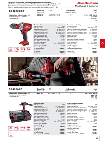 Technische %u00c4nderungen. Preis%u00e4nderungen und Irrtum vorbehalten.Alle Preise verstehen sich als unverbindliche Preisempfehlung exkl. MwSt + vRGSous r%u00e9serve de modifications techniques, de changements de prix et d%u2019erreurs. Tous les prix s%u2018entendent comme prix recommand%u00e9s sans engagement, HT + TAR152WinkelschleiferMeuleses d%u2018angleTechnische DatenLeistungsaufnahme2600 WLeistungsabgabe1800 WSpannung230 VFrequenz50/60 HzMax. Scheibendurchmesser230 mmLeerlaufdrehzahl6%u2018500 1/minSchnitttiefe60 mmWerkzeugaufnahmeM14Kabell%u00e4nge4.0 mAbmessung LxBxH610 x 195 x 290 mmGewicht9.18 kgLieferumfang1x Trenn-Absaughaube f%u00fcr grosseWinkelschleifer 230 mm471.8951x Diamantjet %u2013 DiamanttrennscheibeUniversal500.7203x Gummileiste494.5931x Distanzring494.6151x SoftVib-Handgriff325.3841x Spannmutter M14100.0801x Innensechskantschl%u00fcssel, SW 6104.1671x Stirnlochschl%u00fcssel, BL 5100.1101x Spannflansch335.2821x Transportkoffer499.579Caract%u00e9ristiques techniquesPuissance absorb%u00e9e2600 WPuissance utile1800 WTension230 VFr%u00e9quence50/60 HzDiam%u00e8tre de disque max.230 mmVitesse de rotation %u00e0 vide6%u2018500 tr/minProfondeur de coupe60 mmEmmanchementM14Longueur de c%u00e2ble4.0 mDimension LxlxH610 x 195 x 290 mmPoids9.18 kgEquipement de base1x carter de tron%u00e7onnage pour l%u2018aspirationde poussi%u00e8re avec meuleuse 230 mm471.8951x diamantjet %u2013 Disque de tron%u00e7onnagediamant%u00e9 universel500.7203x inserts en caoutchouc494.5931x rondelle d%u2018%u00e9cartement494.6151x poign%u00e9e SoftVib325.3841x ecrou de serrage M14100.0801x cl%u00e9 %u00e0 hex, SW 6104.1671x cl%u00e9 %u00e0 ergots, BL 5100.1101x bride de serrage335.2821x coffret de transport499.579DCG L 26-6 230 SetBestell-Nr.R%u00e9f%u00e9renceGTINRabattcodeCode de remisePreisPrixDiamant-Trennsystem, 230 mmSyst%u00e8me de d%u00e9coupe diamant, 230 mm494.63140302932241481640.%u2013 exkl. MwSt. hors TVA 2.31 vRGTARTechnische DatenLeistungsaufnahme2600 WLeistungsabgabe1800 WSpannung230 VFrequenz50/60 HzMax. Scheibendurchmesser230 mmLeerlaufdrehzahl6%u2018500 1/minSchnitttiefe60 mmWerkzeugaufnahmeM14Kabell%u00e4nge4.0 mAbmessung LxBxH610 x 195 x 290 mmGewicht9.18 kgLieferumfang1x Trenn-Absaughaube f%u00fcr grosseWinkelschleifer 230 mm471.8951x Diamantjet %u2013 DiamanttrennscheibeUniversal500.7201x F%u00fchrungsschiene GRS 80353.2803x Gummileiste494.5931x Distanzring494.6151x SoftVib-Handgriff325.3841x Spannmutter M14100.0801x Innensechskantschl%u00fcssel, SW 6104.1671x Stirnlochschl%u00fcssel, BL 5100.1101x Spannflansch335.2821x Transportkoffer499.579Caract%u00e9ristiques techniquesPuissance absorb%u00e9e2600 WPuissance utile1800 WTension230 VFr%u00e9quence50/60 HzDiam%u00e8tre de disque max.230 mmVitesse de rotation %u00e0 vide6%u2018500 tr/minProfondeur de coupe60 mmEmmanchementM14Longueur de c%u00e2ble4.0 mDimension LxlxH610 x 195 x 290 mmPoids9.18 kgEquipement de base1x carter de tron%u00e7onnage pour l%u2018aspirationde poussi%u00e8re avec meuleuse 230 mm471.8951x diamantjet %u2013 Disque de tron%u00e7onnagediamant%u00e9 universel500.7201x rail de guidage GRS 80353.2803x inserts en caoutchouc494.5931x rondelle d%u2018%u00e9cartement494.6151x poign%u00e9e SoftVib325.3841x ecrou de serrage M14100.0801x cl%u00e9 %u00e0 hex, SW 6104.1671x cl%u00e9 %u00e0 ergots, BL 5100.1101x bride de serrage335.2821x coffret de transport499.579DCG L 26-6 230 G-SetBestell-Nr.R%u00e9f%u00e9renceGTINRabattcodeCode de remisePreisPrixDiamant-Trennsystem, 230 mmSyst%u00e8me de d%u00e9coupe diamant, 230 mm494.67440302932241551720.%u2013 exkl. MwSt. hors TVA 2.31 vRGTAR