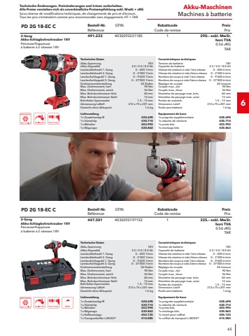 Technische %u00c4nderungen. Preis%u00e4nderungen und Irrtum vorbehalten.Alle Preise verstehen sich als unverbindliche Preisempfehlung exkl. MwSt + vRGSous r%u00e9serve de modifications techniques, de changements de prix et d%u2019erreurs. Tous les prix s%u2018entendent comme prix recommand%u00e9s sans engagement, HT + TAR172Zubeh%u00f6r WinkelschleiferAccessoires Meuleses d%u2018angle StaubschutzkappeCapuchon anti-poussi%u00e8reRabattcodeCode de remise2Perfekter Staubschutz durch aufsteckbare Staubschutzkappen f%u00fcr Winkelschleifer. Das f%u00fchrt zu einer deutlichen Reduktion von Schleifsp%u00e4nen im Innern der Maschine. Ideal f%u00fcr Schleifarbeiten mit keramischen F%u00e4cherschleifscheiben oder Fiberscheiben.Protection parfaite contre la poussi%u00e8re gr%u00e2ce aux capuchons anti-poussi%u00e8re embo%u00eetables pour meuleuses d%u2018angle. Cela permet de r%u00e9duire consid%u00e9rablement les copeaux de pon%u00e7age %u00e0 l%u2018int%u00e9rieur de la machine. Id%u00e9al pour les travaux de pon%u00e7age avec des disques %u00e0 lamelles en c%u00e9ramique ou des disques en fibre.BezeichnungD%u00e9signationF%u00fcr SchutzhaubePour capot de protectionBestell-Nr.R%u00e9f%u00e9renceVEUEPreis PrixST-K SAG%u2022L 1400%u2022L 12-11 125%u2022L 15-11 125%u2022LE 15-11 125%u2022LB 17-11 125%u2022LBE 17-11 125520.543112.%u2013StaubschutzkappeCapuchon anti-poussi%u00e8reRabattcodeCode de remise2Perfekter Staubschutz durch aufsteckbare Staubschutzkappen f%u00fcr Schleifer.Das f%u00fchrt zu einer deutlichen Reduktion von Schleifsp%u00e4nen im Innern der Maschine. Ideal f%u00fcr Schleifarbeiten mit keramischen F%u00e4cherschleifscheiben oder Fiberscheiben..Une protection parfaite contre la poussi%u00e8re gr%u00e2ce %u00e0 des capuchons anti-poussi%u00e8re embo%u00eetables pour les ponceuses. Il en r%u00e9sulte une nette r%u00e9duction des copeaux de pon%u00e7age %u00e0 l%u2018int%u00e9rieur de la machine. Id%u00e9al pour les travaux de pon%u00e7age avec des disques %u00e0 lamelles en c%u00e9ramique ou des disques en fibre.BezeichnungD%u00e9signationF%u00fcr SchutzhaubePour capot de protectionBestell-Nr.R%u00e9f%u00e9renceVEUEPreis PrixST-K INOX%u2022BBE 14-3 110%u2022BBE 14-3 110 Set%u2022BRE 8-4 INOX Set%u2022BRE 14-3 125 Set%u2022BSE 14-3 100%u2022BSE 14-3 100 Set%u2022BSE 14-3 INOX Set%u2022LE 14-7 INOX%u2022SE 14-2 125 Set520.527112.%u2013Absaughauben / Capots d%u2018aspirationAbsaughaubeJupe d%u2018aspirationRabattcodeCode de remise2Absaughauben-Set f%u00fcr Arbeiten mit Trennscheiben f%u00fcr Winkelschleifer 125 mm. Bestehend aus Absaugung und Aluminiumdeckel. Werkzeuglos auf bestehende Schutzhaube montierbar.Kit de hottes d%u2018aspiration pour travaux avec disques %u00e0 tron%u00e7onner pour meuleuses d%u2018angle 125 mm. Compos%u00e9 d%u2018une hotte d%u2018aspiration et d%u2018un couvercle couvercle en aluminium. Peut %u00eatre mont%u00e9 sans outil sur un capot de protection existant.BezeichnungD%u00e9signationDurchmesserDiam%u00e8treBestell-Nr.R%u00e9f%u00e9renceVEUEPreis PrixDE AG D125 Set125 mm530.589195.%u2013AbsaughaubeJupe d%u2018aspirationRabattcodeCode de remise2Absaughauben-Set f%u00fcr Arbeiten mit Trennscheiben f%u00fcr Winkelschleifer 125 mm. Bestehend aus Absaugung und Aluminiumdeckel. Werkzeuglos auf bestehende Schutzhaube montierbar.Kit de hottes d%u2018aspiration pour travaux avec disques %u00e0 tron%u00e7onner pour meuleuses d%u2018angle 125 mm. Compos%u00e9 d%u2018une hotte d%u2018aspiration et d%u2018un couvercle couvercle en aluminium. Peut %u00eatre mont%u00e9 sans outil sur un capot de protection existant.BezeichnungD%u00e9signationDurchmesserDiam%u00e8treBestell-Nr.R%u00e9f%u00e9renceVEUEPreis PrixDE AG D230 Set230 mm530.5901143.%u2013