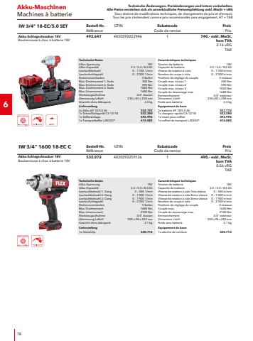 Technische %u00c4nderungen. Preis%u00e4nderungen und Irrtum vorbehalten.Alle Preise verstehen sich als unverbindliche Preisempfehlung exkl. MwSt + vRGSous r%u00e9serve de modifications techniques, de changements de prix et d%u2019erreurs. Tous les prix s%u2018entendent comme prix recommand%u00e9s sans engagement, HT + TAR304Metalloberfl%u00e4chen-BearbeitungTraitement de surface m%u00e9talliqueTechnische DatenLeistungsaufnahme1400 WLeistungsabgabe880 WSpannung230 VFrequenz50/60 HzB%u00fcrsten-/Walzendurchmesser Max.125 mmB%u00fcrsten-/Walzenbreite Max.100 mmLeerlaufdrehzahl1%u2018000 %u2013 3%u2018500 1/minWerkzeugaufnahme19 mmKabell%u00e4nge4.0 mAbmessung LxBxH320 x 210 x 195 mmGewicht2.9 kgLieferumfang1x Schleifvorsatz Rohrband433.4701x Schleifvorsatz Satinieren433.4621x Gummiluftwalze433.8961x Luftpumpe256.2841x Superfinishing-Band326.9171x Superfinishing-Band326.9331x Schleifband MESHFLEX326.8791x Schleifband MESHFLEX326.8525x Schleifband CORUFLEX326.7395x Schleifband CORUFLEX326.7555x Schleifband CORUFLEX434.9141x Koffereinlage433.9181x Transportkoffer L-BOXX%u00ae414.093Caract%u00e9ristiques techniquesPuissance absorb%u00e9e1400 WPuissance utile880 WTension230 VFr%u00e9quence50/60 HzDiam%u00e8tre de brosse125 mmLargeur de brosse100 mmVitesse de rotation %u00e0 vide1%u2018000 %u2013 3%u2018500 tr/minEmmanchement19 mmLongueur de c%u00e2ble4.0 mDimension LxlxH320 x 210 x 195 mmPoids2.9 kgEquipement de base1x adaptateurdepon%u00e7age%u00e0bandepourtubes433.4701x adaptateur de pon%u00e7age pour satinage433.4621x cylinde %u00e0 air en caoutchouc433.8961x pompe d%u2018air256.2841x bande de polissage velcro finition326.9171x bande de polissage velcro finition326.9331x bande abrasive MESHFLEX326.8791x bande abrasive MESHFLEX326.8525x bande abrasive CORUFLEX326.7395x bande abrasive CORUFLEX326.7555x bande abrasive CORUFLEX434.9141x insert pour coffret433.9181x coffret de transport L-BOXX%u00ae414.093BSE 14-3 INOX SetBestell-Nr.R%u00e9f%u00e9renceGTINRabattcodeCode de remisePreisPrixSatiniermaschine und Rohrbandschleifer TRINOXFLEX im SetSatineuseet ponceuse %u00e0 bande pour tubes TRINOXFLEX en set433.454403029318720711%u2018520.%u2013 exkl. MwSt. hors TVA 0.56 vRGTAR
