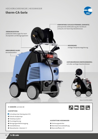 1214-1516-1718-1920-2122-2324-2526-27%u201eGeht nicht? Gibt%u2019s nicht!%u201c: Diese Kaltwasser-Hochdruckreiniger %u00fcberzeugen mit Vielseitigkeit, langer Lebensdauer und praxisgerechter Mobilit%u00e4t. Ob kompakt und tragbar (HD-Serie), platzsparend mit zwei R%u00e4dern (K 1152-Serie, X-Serie, K 2000-Serie, Profi-Serie) oder universell mit vier R%u00e4dern (kleine quadro-Serie) %u2013 im professionellen und semi-professionellen Einsatz begeistern sie den Fachmann und erfreuen den Heimwerker. Kr%u00e4nzle stellt f%u00fcr jede Anwendung ein verl%u00e4ssliches, hochwertiges Werkzeug zur Verf%u00fcgung.SCHNELL ZUR HAND, MOBIL UND UNVERW%u00dcSTLICHHOCHDRUCKREINIGER KALTWASSER %u2013 DIE KOMPAKTEN MODELLEINHALTSANGABEHD-Serie ....................................................................................................K 1152 TST...................................................................................................X-Serie ........................................................................................................K 2000-Serie ............................................................................................Profi-Serie .................................................................................................quadro 10/130 TST................................................................................. Zubeh%u00f6r Stecksystem D12 - Kompakt ...................................BRANCHENSCHWERPUNKTE