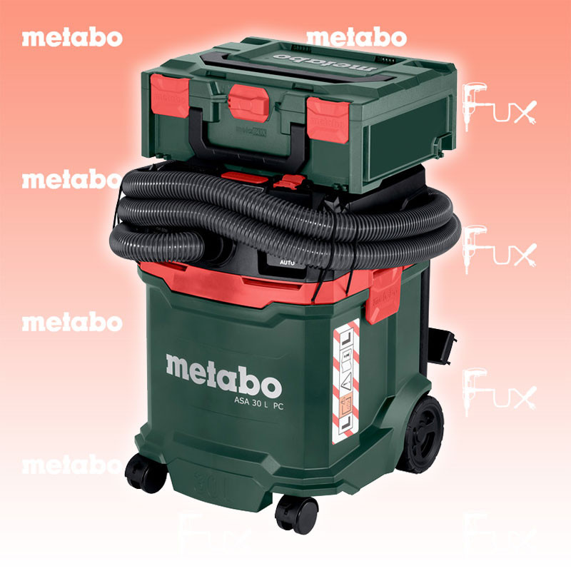 Das Ladenlokal bleibt vom 25. Dezember 2025 bis am 04. Januar 2026 geschlossen. Bestellungen und Lieferungen von Neugeräten werden trotz Ferienabwesenheit in gewohnter Fux-Manier entgegengenommen und ausgeliefert. Zu "Nass - und Trockenstaubsauger" von Metabo Metabo ASA 30 L PC Allessauger Bestell- und Artikelnummer: 602086180 Kompakter, vielseitig einsetzbarer Sauger der Staubklasse L mit integrierter Filterabreinigung Schnelles Koppeln von metaBOXen mit Werkzeug und Zubehör auf dem Sauger für einfachen Standortwechsel Nass-/Trockensauger mit gewerblicher Zulassung Zum Absaugen an Elektrowerkzeugen und zum Reinigen von Baustelle, Werkstatt usw. Gerätesteckdose für ein Elektrowerkzeug zur Nutzung der Ein-/Ausschaltautomatik des Saugers PressClean: manuelle Filterabreinigung durch starken Luftstrom bei Schalterbetätigung am Sauger in den Arbeitspausen Anwenderschutz: zertifiziert nach EU-Norm für Stäube der Staubklasse L Saugstopp beim Nasssaugen, wenn die maximale Füllhöhe erreicht wird Nachlaufautomatik zum völligen Entleeren des Saugschlauches Antistatik-Grundausstattung verhindert statische Aufladung bei Verwendung des geeigneten Zubehörs Einfacher Transport dank Kabel- und Schlauchhalterung sowie Depot für Rohre und Düsen Praktisches Zubehör-Depot und Ablagefläche Praktisches Zubehörfach mit Klappdeckel für Kleinteile Mitgeliefertes Saugerzubehör mit Quick-System für schnelles Umrüsten im Einsatz Technische Daten Luftleistung max. 4200 l/min Unterdruck 225 hPa (mbar) Filterfläche 3500 cm² Aufnahmeleistung max. 1200 W Behältervolumen 30 l Saugschlauch - Ø 32 mm Schlauchlänge 3.2 m Gewicht 10.8 kg Kabellänge 5.5 m Standard-Ausrüstung Saugschlauch Quick (Ø 32 mm / 3,2 m) 3 Saugrohre aus Kunststoff Vliesfilterbeutel Fugendüse Bodendüse (300 mm breit) Saugdüse (120 mm breit) Anschlussmuffe Quick Ø 28/35 mm Handgriff-Zwischenstück Quick Professional Zubehör Verbrauchsmaterial Listenpreis CHF 299.00 Fuxpreis CHF 254.00 inkl. 8.1% MwSt, inkl vRG Frankolieferung Kein Grauimport! Produkt bestellen 1 Stück 2 Stück 3 Stück 4 Stück 5 Stück 6 Stück 7 Stück 8 Stück 9 Stück 10 Stück Option: Bestellen Sie das Produkt zum Listenpreis, und erhalten dafür 36 Monate Fux ALL-IN-ServiceInfos Alle Angaben ohne Gewähr und solange Vorrat reicht!Wiederverkäufer werden?Lehrlingsrabatt? Produkt als PDFProduktevideo 360° Ansicht AKTION 15%
