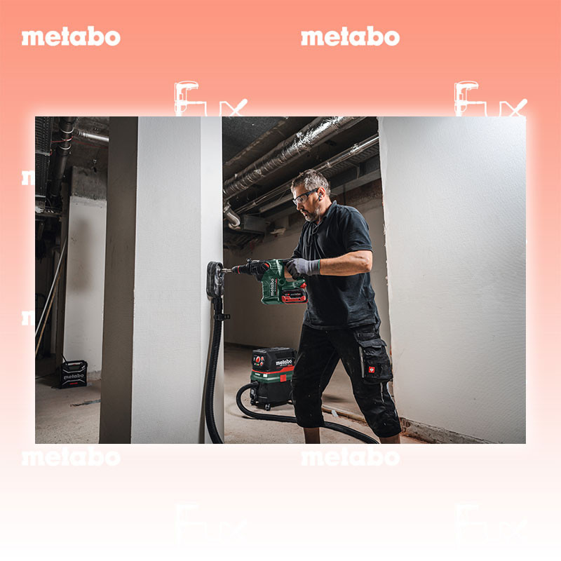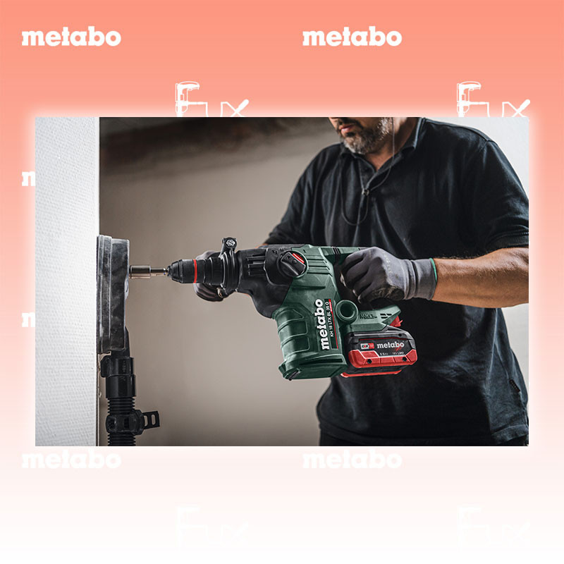 Das Ladenlokal bleibt vom 25. Dezember 2025 bis am 04. Januar 2026 geschlossen. Bestellungen und Lieferungen von Neugeräten werden trotz Ferienabwesenheit in gewohnter Fux-Manier entgegengenommen und ausgeliefert. Zu "Akku Bohrhammer" von Metabo FULL Service: 36 Monate zum Nulltarif für Sie! Weitere Infos zum FULL Service Dieses Produkt ist CAS kompatibel! Weitere Infos zu CAS Metabo KH 18 LTX BL 35 Q Akku-Kombihammer Bestell- und Artikelnummer: 600813850 Stärkster SDS-plus-Akku-Hammer von Metabo zum schnellen Bohren und effizienten Meißeln in Beton und Mauerwerk Maximale Bohrleistung, Effizienz und Lebensdauer durch Brushless-Technologie und Hochleistungsschlagwerk Kombihammer mit 3 Funktionen: Hammerbohren, Bohren und Meißeln Metabo VibraTech (MVT): integriertes Dämpfungssystem zur Reduzierung der Vibrationen zum Schutz der Gesundheit Perfekte Ergonomie dank handnahem Schwerpunkt und optimierter Griffkontur Metabo Quick: Schnellwechsel zwischen SDS-Plus-Hammerfutter und Schnellspannbohrfutter für viele verschiedene Anwendungen Umschaltbar auf Linkslauf zum bequemen Lösen verkanteter Einsatzwerkzeuge Optionale Reduzierung von Drehzahl und Schlagenergie zum Anbohren und für Arbeiten in weicheren Materialien Wiederanlaufschutz: verhindert unbeabsichtigtes Anlaufen nach Akkuwechsel Doppelt sicher beim Blockieren des Bohrers: Kein Kick-back dank mechanischer Entkoppelung plus blitzschneller sensorgesteuerter Abschaltung LED-Arbeitslicht für optimale Sicht auf die Bohrstelle Viele Marken, ein Akku-System: Dieses Produkt ist kombinierbar mit allen 18V-Akkupacks und Ladegeräten der CAS Marken: www.cordless-alliance-system.com OHNE AKKUS UND LADEGERÄT Technische Daten Akkuspannung 18 V Max. Einzelschlagenergie 4.2 J ( EPTA ) Max. Schlagzahl 4.350 /min Bohr-Ø Beton mit Hammerbohrern 32 mm Leerlaufdrehzahl 0 - 810 /min Werkzeugaufnahme SDS-plus Gewicht ohne Akkupack 4,4 kg Standard-Ausrüstung Hammerfutter für Werkzeuge mit SDS-plus-Einsteckende Bohrtiefenanschlag ohne Akkupack, ohne Ladegerät Schnellspannbohrfutter für Werkzeuge mit zylindrischem Schaft Zusatzhandgriff Zubehör Verbrauchsmaterial Listenpreis CHF 645.00 Fuxpreis CHF 548.00 inkl. 8.1% MwSt, inkl vRG Frankolieferung Kein Grauimport! Produkt bestellen 1 Stück 2 Stück 3 Stück 4 Stück 5 Stück 6 Stück 7 Stück 8 Stück 9 Stück 10 Stück Alle Angaben ohne Gewähr und solange Vorrat reicht!Wiederverkäufer werden?Lehrlingsrabatt? Produkt als PDFVideo LiHD 1Video LiHD 2 AKTION 15%