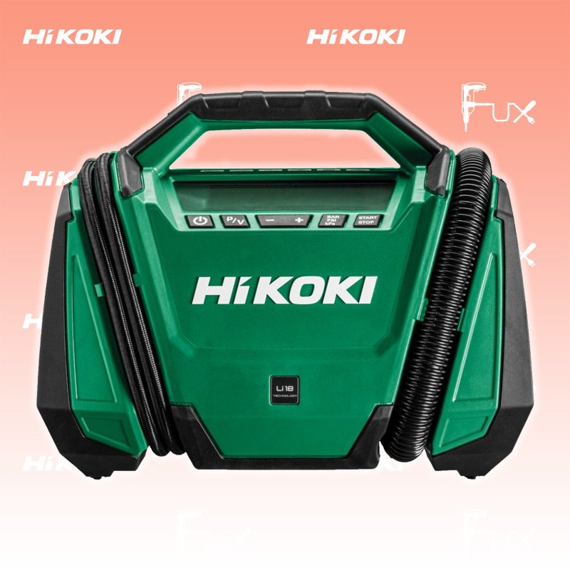 Das Ladenlokal bleibt vom 25. Dezember 2025 bis am 04. Januar 2026 geschlossen. Bestellungen und Lieferungen von Neugeräten werden trotz Ferienabwesenheit in gewohnter Fux-Manier entgegengenommen und ausgeliefert. Zu "Akku Kompressor" von Hikoki Hikoki / Hitachi UP18DA (Basic) Akku-Kompressor Bestell- und Artikelnummer: UP18DABASIC Aus der Marke Hitachi wird HiKOKI! 36V (Basic) Li-ion Brushless Motor, weitestgehend wartungsfrei Leichter und leistungsstarker Akku Kompressor für den Einsatz im Innenausbau und auf Baustellen Ölfreier Kolbenverdichter, einfacher Transport und reduzierter Serviceaufwand Instrumententafel mit gut ablesbaren Manometern für Kessel- und Arbeitsdruck Regelbarer, anwendungsgerechter Arbeitsdruck durch Druckminderer mit Manometer Armaturen und Bedienelemente im Rohrrahmen geschützt und gut sichtbar Zweiter Akkupack direkt am Kompressor deponierbar (Weiterarbeiten ohne Unterbrechung) OHNE AKKUS UND LADEGERÄT Technische Daten Akkuspannung 18 V Füllleistung 16 l/min Max. Druck 11 bar Hochdruckschlauch (Länge) 1200 mm Volumenschlauch (Länge) 490 mm Abmessung L 328 mm Abmessung B 256 mm Abmessung H 185 mm Gewicht 2.6 kg Standard-Ausrüstung Volumenschlauch mit 2 Adaptern Universal-Hochdruckadapter Hochdruckadapter für Fahrradventil Ballfüllnadel 12V-KFZ-Kabel Zubehör Listenpreis CHF 215.10 Fuxpreis CHF 172.00 inkl. 8.1% MwSt, inkl vRG Versand CHF 15.00 Kein Grauimport! Produkt bestellen 1 Stück 2 Stück 3 Stück 4 Stück 5 Stück 6 Stück 7 Stück 8 Stück 9 Stück 10 Stück Alle Angaben ohne Gewähr und solange Vorrat reicht!Lehrlingsrabatt? Produkt als PDF AKTION 20%