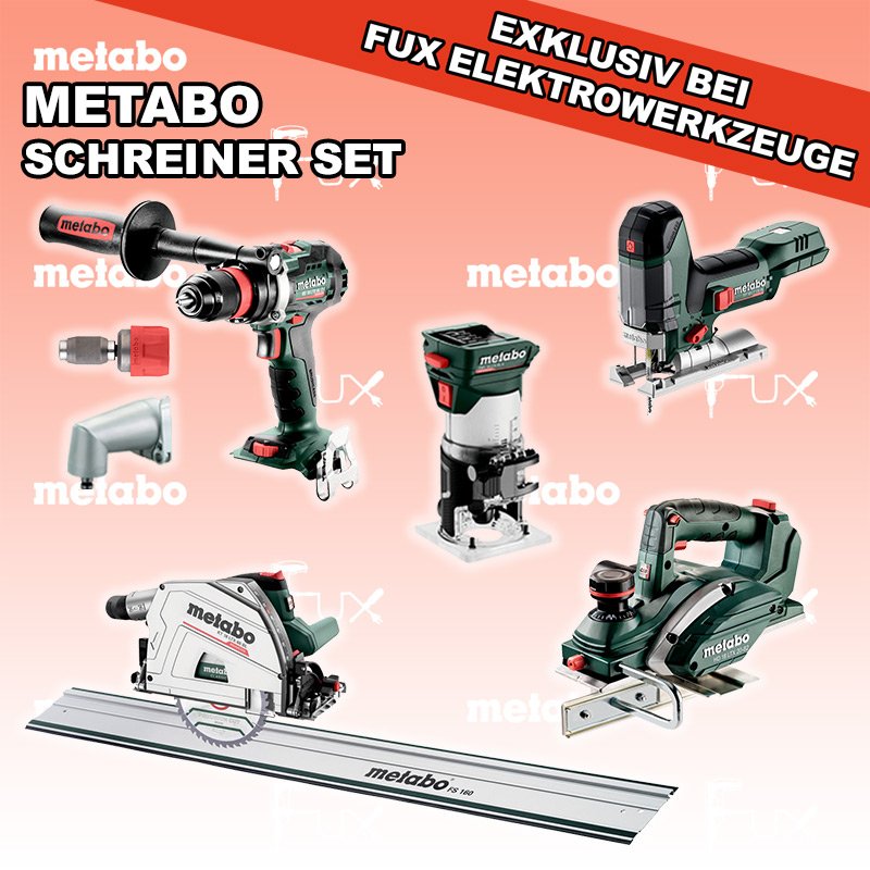Das Ladenlokal bleibt vom 25. Dezember 2025 bis am 04. Januar 2026 geschlossen. Bestellungen und Lieferungen von Neugeräten werden trotz Ferienabwesenheit in gewohnter Fux-Manier entgegengenommen und ausgeliefert. Heute auf dieses Produkt 39% Rabatt! Zu "Combo Set 18 Volt " von Metabo FULL Service: 36 Monate zum Nulltarif für Sie! Weitere Infos zum FULL Service Dieses Produkt ist CAS kompatibel! Weitere Infos zu CAS Sparfux Aktionen FUX SPECIAL EXKLUSIV BEI FUX Metabo Schreiner Set 4 SOLO Bestell- und Artikelnummer: Schreiner Set 4 SOLO ST 18 LT 130 BL Akku-StichsägeAkkuspannung 18 V Hubzahl 1000-3.500 /min Gewicht ohne Akkupack 1.5 kgInfos BS 18 LTX BL Q I Akku-BohrschrauberAkkuspannung 18 V Drehzahl 0-550 / 0-2000 U/min Drehmoment hart / weich 130 / 65 Nm Gewicht (mit Akkupack) 2.3 kgInfos FMV 18 LTX BL 8 Akku Kantenfräse Akkuspannung 18 V Leerlaufdrehzahl 4.800 - 29.000 /min Spannbohrung der Spannzange 6 / 8 mmInfos KT 18 LTX 66 BL Akku TauchkreissägeAkkuspannung 18 V Schnitt-Tiefe bei 90° 0-66 mm Sägeblatt 165 mm Gewicht 5.3 kgInfos HO 18 LTX 20-82 Akku-Einhand-HobelAkkuspannung 18 V Hobelbreite 82 mm Spanabnahme einstellbar 0-2 mm Gewicht 3.5 KgInfos FS 160 FührungsschieneGesamtlänge 1600 mmInfos Schnellwechselbithalter »Quick«Schnellwechselbithalter »Quick« Geeignet für alle Metabo "Quick" Maschinen Bits mit 1/4 "Außensechskantantrieb Infos Schnellwechselwinkeladapter »Quick«Metabo "Quick" Maschinen mit Spannzange Ø 43 mm Magnetischer Bithalter mit 1/4 "(6,35 mm) SechskantschaftInfos Registriere die in diesem Set vorhandenen Metabo Maschinen auf metabo.ch, und ergattere dir bis zu 5 Gratis Akkus!Zusätzlich offerieren wir zu diesem Set einen Gratis Akku!OHNE AKKUS UND LADEGERÄT Standard-Ausrüstung In diesem Set enthalten: ST 18 LT 130 BL Akku-Stichsäge BS 18 LTX BL Q I Akku-Bohrschrauber FMV 18 LTX BL 8 Akku Kantenfräse KT 18 LTX 66 BL Akku Tauchkreissäge HO 18 LTX 20-82 Akku-Einhand-Hobel FS 160 Führungsschiene Schnellwechselbithalter »Quick« Schnellwechselwinkeladapter »Quick« Zubehör Verbrauchsmaterial Listenpreis CHF 2'049.50 Fuxpreis CHF 1'234.00 inkl. 8.1% MwSt, inkl vRG Versand CHF 40.00 Kein Grauimport! Produkt bestellen 1 Stück 2 Stück 3 Stück 4 Stück 5 Stück 6 Stück 7 Stück 8 Stück 9 Stück 10 Stück Alle Angaben ohne Gewähr und solange Vorrat reicht!Wiederverkäufer werden? Produkt als PDFVideo LiHD 1Video LiHD 2 AKTION 39%