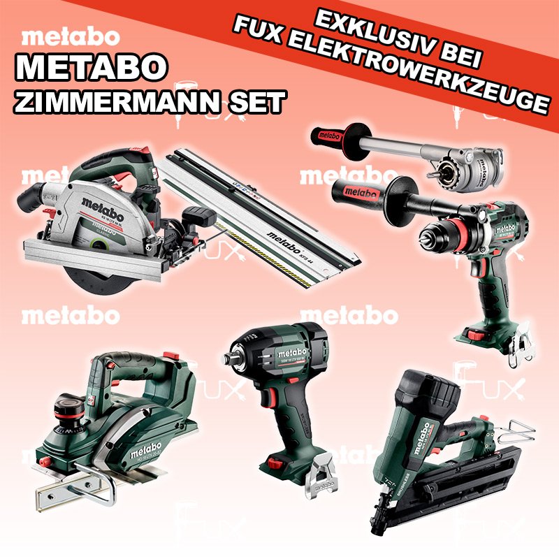 Das Ladenlokal bleibt vom 25. Dezember 2025 bis am 04. Januar 2026 geschlossen. Bestellungen und Lieferungen von Neugeräten werden trotz Ferienabwesenheit in gewohnter Fux-Manier entgegengenommen und ausgeliefert. Heute auf dieses Produkt 27% Rabatt! Zu "Zimmermann Set" von Metabo FULL Service: 36 Monate zum Nulltarif für Sie! Weitere Infos zum FULL Service Dieses Produkt ist CAS kompatibel! Weitere Infos zu CAS Sparfux Aktionen FUX SPECIAL EXKLUSIV BEI FUX Metabo Zimmermann SET 9 SOLO Bestell- und Artikelnummer: Zimmermann SET 9 SOLO BS 18 LTX BL Q I Akku-BohrschrauberAkkuspannung 18 V Drehzahl 0-550 / 0-2000 U/min Drehmoment hart / weich 130 / 65 Nm Gewicht (mit Akkupack) 2.3 kgInfos SSW 18 LTX 550 BL Akku-SchlagschrauberAkkuspannung 18 V Anziehdrehmoment 550 Nm Werkzeugaufnahme 1/2" Gewicht ohne Akkupack 1,4 kgInfos NFR 18 LTX 90 BL Akku NaglerAkkuspannung 18 V Nagelstreifen Winkel 30 - 34 ° Nagellänge 50 - 90 mm Nageldurchmesser 2,9 - 3,3 mm Gewicht ohne Akkupack 4,1 kgInfos HO 18 LTX 20-82 Akku-Einhand-HobelAkkuspannung 18 V Hobelbreite 82 mm Spanabnahme einstellbar 0-2 mm Gewicht 3.5 KgInfos KS 18 LTX 66 BL Akku HandkreissägeAkkuspannung 18 V Schnitt-Tiefe bei 90° 0-66 mm Sägeblatt 165 mm Gewicht 4.5 kgInfos Drehmomentvorsatz Power X3Drehmomentvorsatz ermöglicht dreifache Leistungssteigerung der Maschine (Drehmoment) für härteste AnwendungenInfos Kappschiene KFS 44Gesamtlänge 834 mm Schnittlänge 440 mmInfos Registriere die in diesem Set vorhandenen Metabo Maschinen auf metabo.ch, und ergattere dir bis zu 5 Gratis Akkus!Zusätzlich offerieren wir zu diesem Set einen Gratis Akku!OHNE AKKUS UND LADEGERÄT Standard-Ausrüstung In diesem Set enthalten: BS 18 LTX BL Q I Akku-Bohrschrauber SSW 18 LTX 550 BL Akku-Schlagschrauber NFR 18 LTX 90 BL Akku Nagler HO 18 LTX 20-82 Akku-Einhand-Hobel KS 18 LTX 66 BL Akku Handkreissäge Drehmomentvorsatz Power X3 Kappschiene KFS 44 Listenpreis CHF 2'398.50 Fuxpreis CHF 1'734.00 inkl. 8.1% MwSt, inkl vRG Versand CHF 25.00 Kein Grauimport! Produkt bestellen 1 Stück 2 Stück 3 Stück 4 Stück 5 Stück 6 Stück 7 Stück 8 Stück 9 Stück 10 Stück Alle Angaben ohne Gewähr und solange Vorrat reicht!Wiederverkäufer werden? Produkt als PDF NEUHEITAKTION 27%
