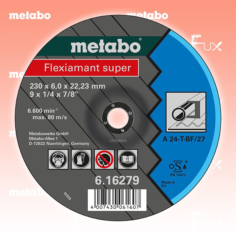 Das Ladenlokal bleibt vom 25. Dezember 2025 bis am 04. Januar 2026 geschlossen. Bestellungen und Lieferungen von Neugeräten werden trotz Ferienabwesenheit in gewohnter Fux-Manier entgegengenommen und ausgeliefert. Zu "Qualitätsklasse A 24-T Schruppscheiben" von Metabo Metabo Schruppscheibe Stahl 125 mm Bestell- und Artikelnummer: 616486000 Universalscheibe für die gesamte Metallbearbeitung Besonders geeignet für Entgratungsarbeiten und Kantenschliff, auch für die Gussbearbeitung Härte: hart Gute Abtragsleistung bei extrem guter Standzeit Arbeitshöchstgeschwindigkeit 80 m/s Technische Daten Qualitätsklasse A 24 T Durchmesser x Dicke x Bohrung 125 x 6 x 22,23 mm Ausführung gekröpft Max. Drehzahl 12200 / min Standard-Ausrüstung Verkaufseinheit 25 Stk. Listenpreis CHF 162.50 Fuxpreis CHF 138.00 inkl. 8.1% MwSt, inkl vRG Frankolieferung Kein Grauimport! Produkt bestellen Verkaufseinheit 25 Stk. 1 Stück 2 Stück 3 Stück 4 Stück 5 Stück 6 Stück 7 Stück 8 Stück 9 Stück 10 Stück 11 Stück 12 Stück 13 Stück 14 Stück 15 Stück 16 Stück 17 Stück 18 Stück 19 Stück 20 Stück 21 Stück 22 Stück 23 Stück 24 Stück 25 Stück 26 Stück 27 Stück 28 Stück 29 Stück 30 Stück 31 Stück 32 Stück 33 Stück 34 Stück 35 Stück 36 Stück 37 Stück 38 Stück 39 Stück 40 Stück 41 Stück 42 Stück 43 Stück 44 Stück 45 Stück 46 Stück 47 Stück 48 Stück 49 Stück 50 Stück Alle Angaben ohne Gewähr und solange Vorrat reicht!Wiederverkäufer werden?Lehrlingsrabatt? Produkt als PDF AKTION 15%