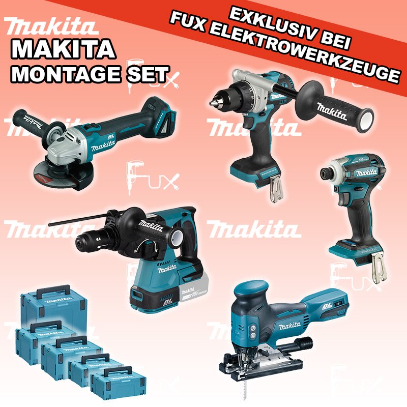 Das Ladenlokal bleibt vom 25. Dezember 2025 bis am 04. Januar 2026 geschlossen. Bestellungen und Lieferungen von Neugeräten werden trotz Ferienabwesenheit in gewohnter Fux-Manier entgegengenommen und ausgeliefert. Zu "Montage Set" von Makita FUX SPECIAL EXKLUSIV BEI FUX Makita Montage Set 1 SOLO Bestell- und Artikelnummer: MAMontage Set 1 SOLO DHR243ZJ Akku-BohrhammerAkkuspannung 18 V Einzelschlagstärke 2.0 J ( EPTA ) Bohrleistung in Beton 24 mm Gewicht 3.4 kgInfos DDF492Z Akku-BohrschrauberAkkuspannung 18 V Leerlaufdrehzahl 0 - 550 / 0 - 2100 min⁻¹ Drehmoment hart / weich 130 / 65 Nm Gewicht inkl. Akku 2.3 - 2.6 kgInfos DGA506ZJ Akku-WinkelschleiferAkkuspannung 18 V Drehzahl 9000 U / min Scheibendurchmesser 125 mm Gewicht 2,5 kgInfos DJV18ZJ Akku-StichsägeAkkuspannung 18 V Hubzahl 800 - 3500/ min Schnittleistung Holz 135 mm / Stahl 10 mm Gewicht 2.5 kgInfos DTD173Z Akku-SchlagschrauberAkkuspannung 18 V Anziehdrehmoment 20 / 50 / 170 / 180 Nm Werkzeugaufnahme 1/4" (Innensechskant) Gewicht inkl. Akku 1.2 - 1.5 kgInfos 2 x MAKPAC Gr. 2Produktabmessung (L x B x H) 395 x 295 x 163 mm Infos Einsatz für diverse Akkuschrauber Einsatz für DDF343ZJ, DDF441, DDF446, DDF448, DDF451, DDF453, DDF456R, DDF458, DDF459, DDF480, DDF481, DDF482, DDF484, DDF485, DDF486, DHP441, DHP446, DHP448, DHP451, DHP456, DHP458, DHP459, DHP470, DHP480, DHP481, DHP482, DHP484, DHP485, DHP486, DLX2126TJ1, DLX3092TJInfos Einsatz für diverse Schlagschrauber Einsatz für DDF083, DDF483, DHP483, DTD134, DTD137, DTD146, DTD148, DTD152, DTD153, DTD154, DTD155, DTD170, DTD171, DTP131, DTP141, DTS130, DTS131, DTS141, DTW180, DTW181, DTW250, DTW251, DTW284, DTW285Infos OHNE AKKUS UND LADEGERÄT Standard-Ausrüstung In diesem Set enthalten: DHR243ZJ Akku-Bohrhammer DDF492Z Akku-Bohrschrauber DGA506ZJ Akku-Winkelschleifer DJV18ZJ Akku-Stichsäge DTD173Z Akku-Schlagschrauber 2 x MAKPAC Gr. 2 Einsatz für diverse Akkuschrauber Einsatz für diverse Schlagschrauber Geliefert im Koffer Zubehör Listenpreis CHF 1'641.00 Fuxpreis CHF 987.00 inkl. 8.1% MwSt, inkl vRG Versand CHF 20.00 Kein Grauimport! Produkt bestellen 1 Stück 2 Stück 3 Stück 4 Stück 5 Stück 6 Stück 7 Stück 8 Stück 9 Stück 10 Stück Option: Makita BL 1860 B ( Li-lon Akku ) für CHF 95.- statt CHF 124.-Infos Alle Angaben ohne Gewähr und solange Vorrat reicht!Wiederverkäufer werden? Produkt als PDF AKTION 39%