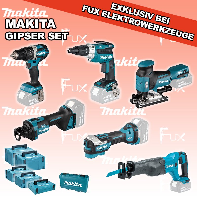 Zu "Gipser Set" von Makita FUX SPECIAL EXKLUSIV BEI FUX Makita Gipser Set 9 SOLO Bestell- und Artikelnummer: maGipser Set 9 SOLO DHP484ZJ Akku-SchlagbohrschrauberAkkuspannung 18 V Drehzahlen 0-500 / 0-2000 U/min Drehmoment hart / weich 54 / 30 Nm Gewicht 1.6 kgInfos DFS251ZJ Akku-SchrauberAkkuspannung 18 V Drehzahl 0-2500 U/min Werkzeugaufnahme 1/4" (Innensechskant) Gewicht 1.5 kgInfos DTM52Z Multifunktions WerkzeugAkkuspannung 18 V Schwingungen 10000 - 20000 min-1 Werkzeugaufnahme Starlock Max System Gewicht inkl. Akku 2.0 kg Infos DCO181Z Akku-RotationsschneiderAkkuspannung 18 V Leerlaufdrehzahl 32‘000 /min Für 1/4" und 1/8" Werkzeuge Gewicht inkl. Akku 1.7 kgInfos DJR186ZK Akku-SäbelsägeAkkuspannung 18 V Hubzahl 0-2800 / min Schnittleistung Holz 255 mm / Rohre 130 mm Gewicht 3.6 kgInfos DJV18ZJ Akku-StichsägeAkkuspannung 18 V Hubzahl 800 - 3500/ min Schnittleistung Holz 135 mm / Stahl 10 mm Gewicht 2.5 kgInfos MAKPAC Gr. 3Produktabmessung (L x B x H) 377 x 277 x 176 mm Infos Einsatz für DTM52 Einsatz für DTM52 Makpac Koffer Typ C (821551-8) Infos MAKPAC Gr. 1Produktabmessung (L x B x H) 395 x 295 x 110 mm Infos Einsatz für DCO181Einsatz für DCO181 Makpac Koffer Typ A (821549-5)Infos OHNE AKKUS UND LADEGERÄT Standard-Ausrüstung In diesem Set enthalten: DHP484ZJ Akku-Schlagbohrschrauber DFS251ZJ Akku-Schrauber DTM52Z Multifunktions Werkzeug DCO181Z Akku-Rotationsschneider DJR186ZK Akku-Säbelsäge DJV18ZJ Akku-Stichsäge MAKPAC Gr. 3 Einsatz für DTM52 MAKPAC Gr. 1 Einsatz für DCO181 Geliefert im Koffer Zubehör Listenpreis CHF 1'683.00 Fuxpreis CHF 1'140.00 inklusive 8.1% MwSt Versand CHF 20.00 Kein Grauimport! Produkt bestellen 1 Stück 2 Stück 3 Stück 4 Stück 5 Stück 6 Stück 7 Stück 8 Stück 9 Stück 10 Stück Option: Makita BL 1860 B ( Li-lon Akku ) für CHF 95.- statt CHF 124.-Infos Alle Angaben ohne Gewähr und solange Vorrat reicht!Wiederverkäufer werden? Produkt als PDF AKTION 32%